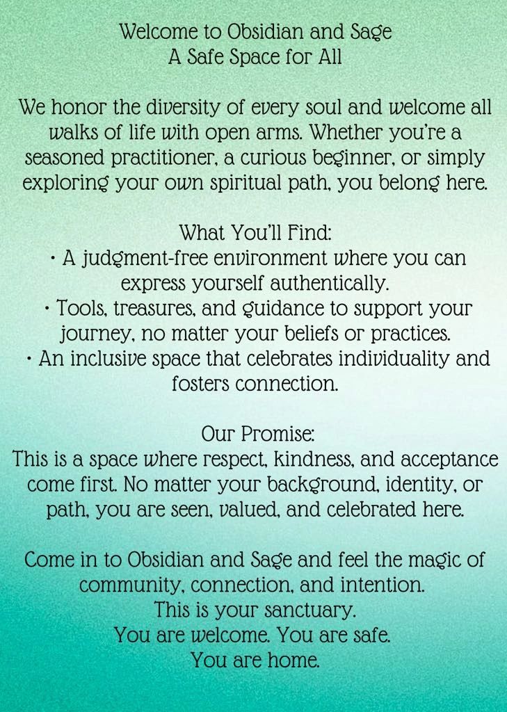 At Obsidian & Sage LLC, you’ll find a treasure trove of mystical delights—from shimmering crystals and fragrant candles to tarot decks, jewelry, books, and enchanting home accessories.